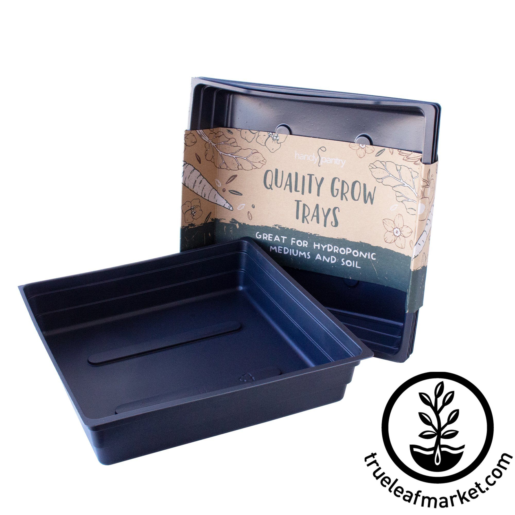 10x10 inch growing trays without drain holes (1010). Half the size of our 1020 plant growing trays / flats. Works well as drip tray, or for growing wheatgrass, microgreens and other growing applications. Re-usable growing trays. Choose Quantity: