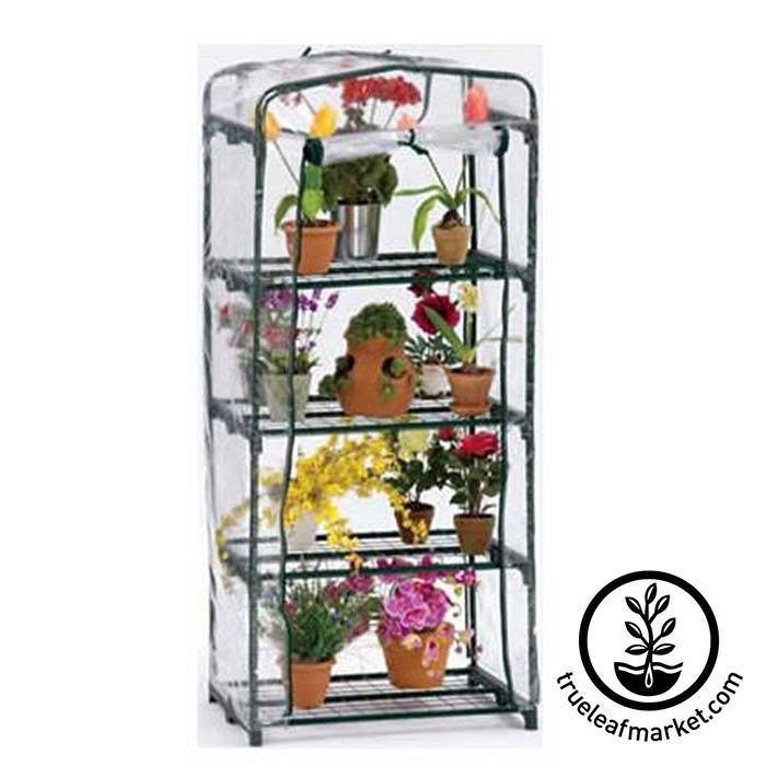 This growing stand is ideal for inside or outside your home. The small size allows the grow racks to be placed on decks, patios, or indoors next to a window. Each Greenhouse grow stand comes with a UV protected, clear, vinyl cover which holds in humidity reducing watering needs. Easy access and ventilation is provided by the zippered door panel in the covering. The growing racks also include a powder coated steel frame and multiple shelves which are perfect for maximum growing in a small space.