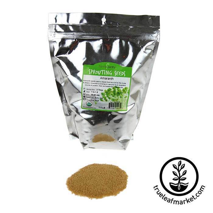 Amaranth seeds were a staple food source for the Aztecs & Incas and are used as a bulk cereal grain today in South America & Africa. Amaranth seeds and sprouts are an excellent source of protein, fiber and essential amino acids, and are a great addition to emergency home food bulk storage.