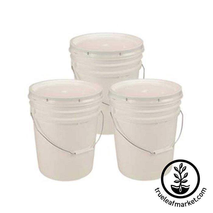 White, 5 gallon food grade buckets with lids. These storage pails are made with FDA approved plastic 90 mil thick, making them amazingly strong and solid. The all-metal handle has an attached plastic molded grip that protects hands from heavy loads. Lipped lids make stacking safe and easy.