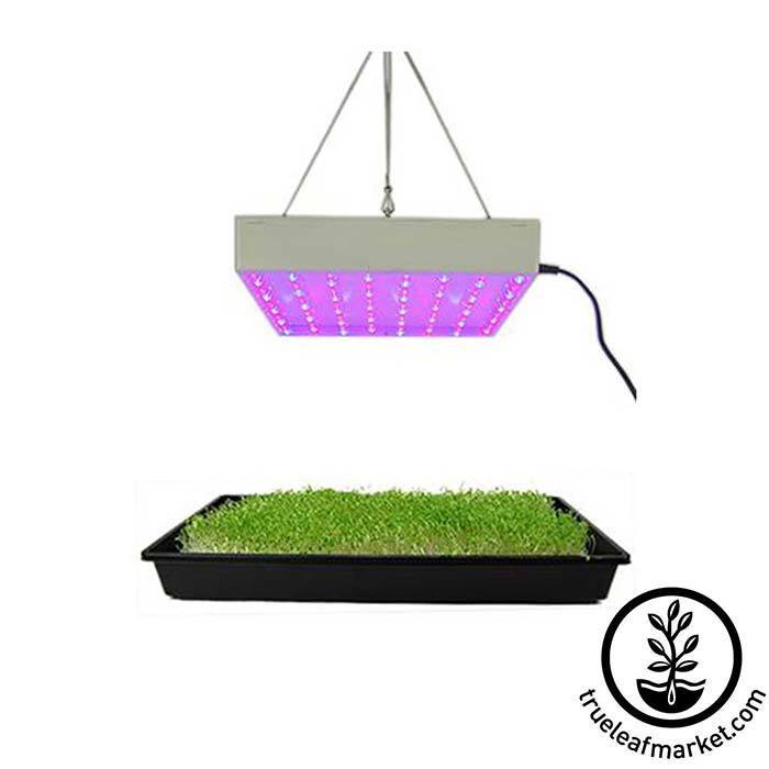 Our most popular LED Grow Light. Perfect for greening up 3 or 4 trays of wheatgrass or microgreens at a time. Also a great choice for houseplants, seedlings and more. Very bright light, covering 5 sq. ft. of growing area as primary lighting. Up to 12 sq. ft. supplemental.