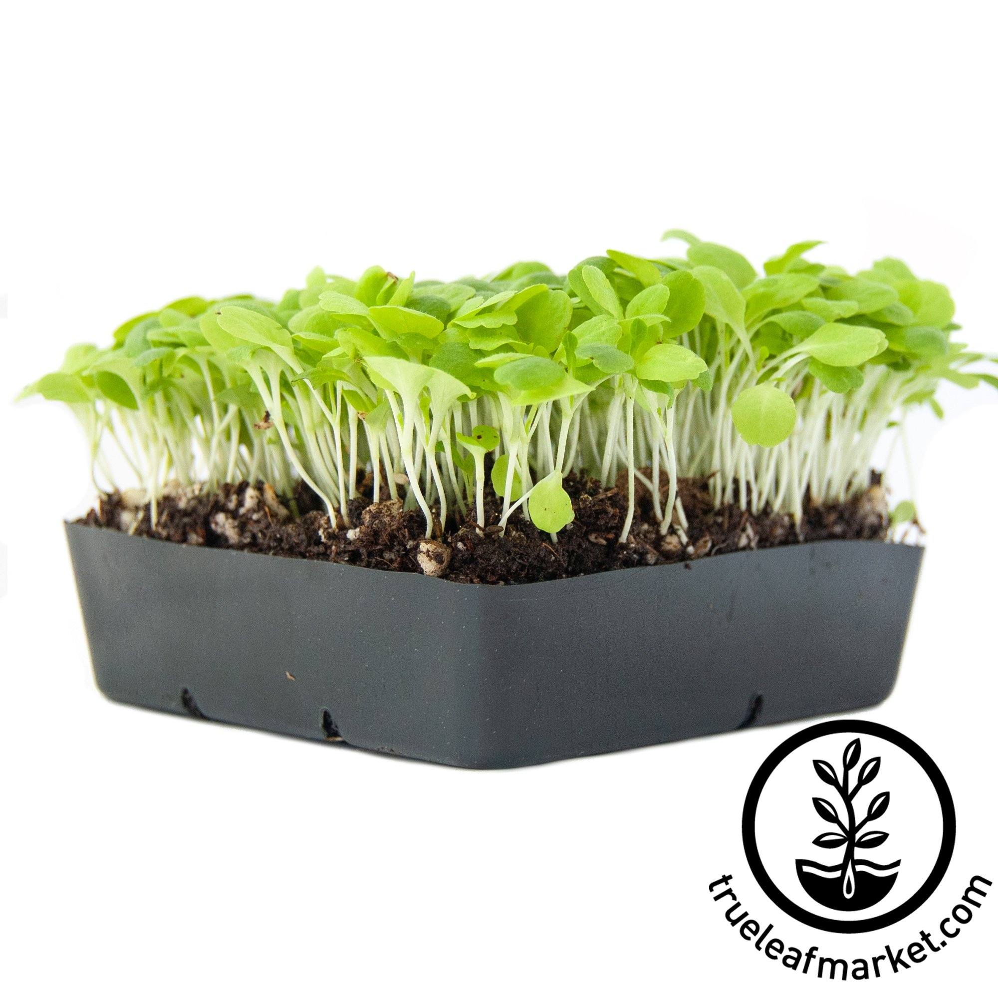Lettuce Microgreens Seeds. Lactuca sativa. Non-GMO. Light green in color and mild lettuce / salad flavor. Can be grown as microgreens (harvest in 8 to 12 days) or seed more sparsely and harvest as baby greens (21+ days) Grow only in soil.