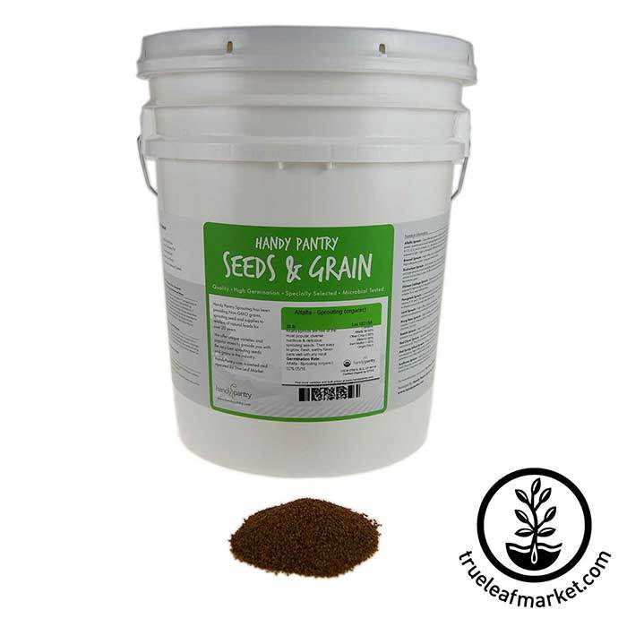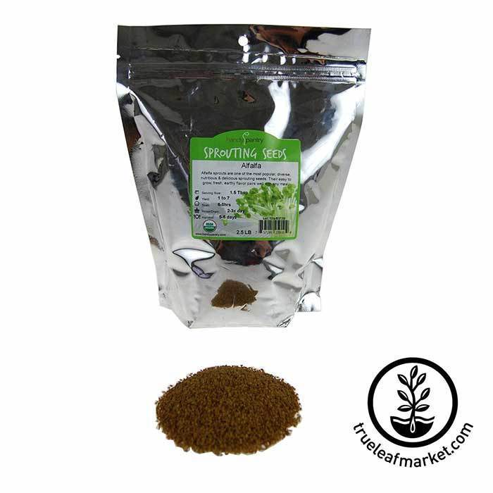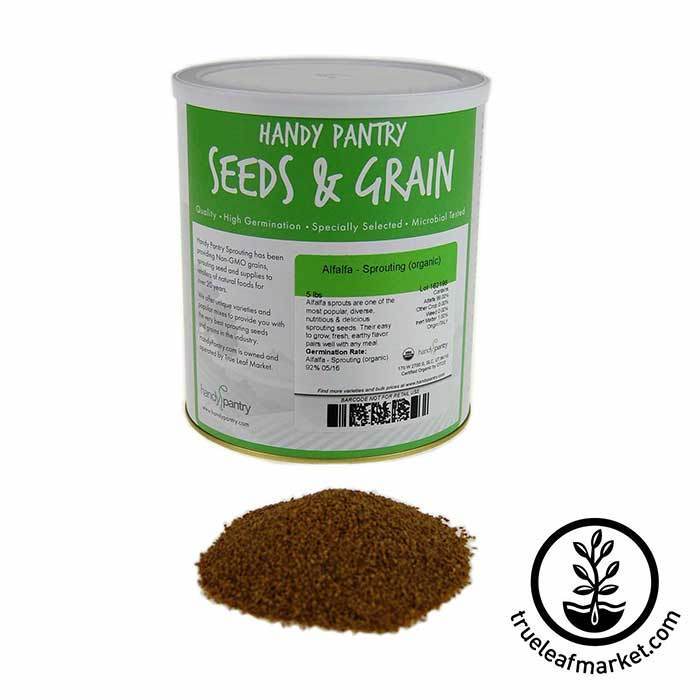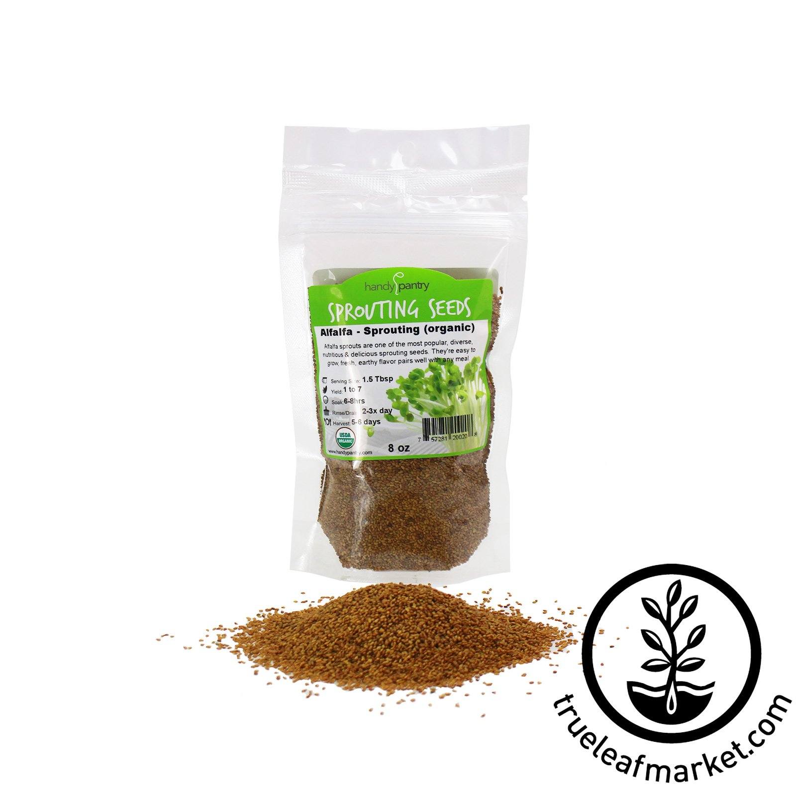 Alfalfa sprout seeds are the all time most popular sprout world wide, and for good reason: Alfalfa seeds are easy to grow, healthy, fresh and delicious. Choose your Alfalfa sprouting seeds in various quantities, and resealable packaging. Certified Organic, Non-GMO, Handy Pantry Brand seeds.