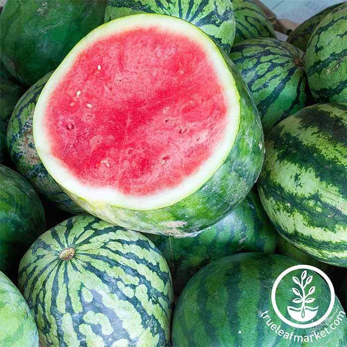 Tasty Seedless Watermelon Hybrid (Citrullus lanatus x.) has a deep red flesh on the inside without all those pesky seeds!. Very uniform in shape and in taste! It may be the earliest watermelon out there.