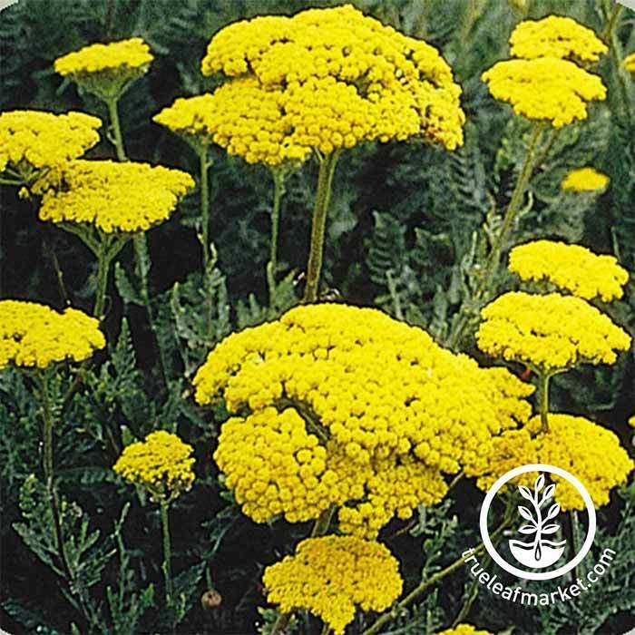 Golden yarrow achillea seeds have a wildflower-like hardiness and are most commonly broadcasted directly outdoors after the frost, with little reason to ever sow indoors. Evenly rake and tamp broadcasted seeds into soil. If sowing traditionally, plants will need protection against the wind. Once established, yarrow may aggressively reseed itself and remain in the garden for as long as you'll have it around. Lightly press 7 – 8 Golden yarrow seeds in loamy, medium dry, and well-drained soil in full sun. Golden yarrow achillea is a sun-hardy perennial known to tolerate drought and poor soils. Plants are susceptible to rust, stem rot, and powdery mildew if grown in poorly drained and saturated soils. Yarrow is listed by the USDA as being an invasive species and may aggressively reseed itself by both seeding and rhizomes. White yarrow is a perennial that matures in its 2nd year as an 18 – 36" tall weedy upright with an 18 – 36" spread bursting with floreted clumps of countless tiny golden yellow blooms.